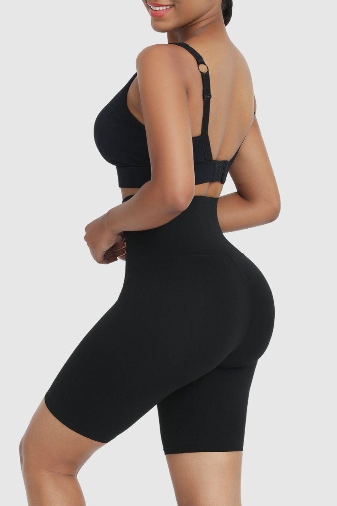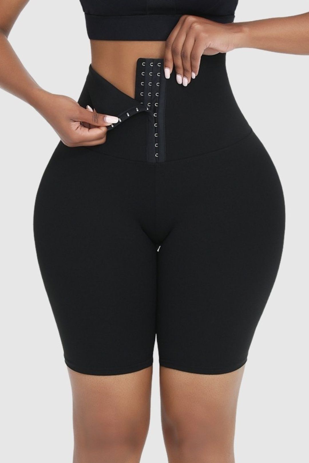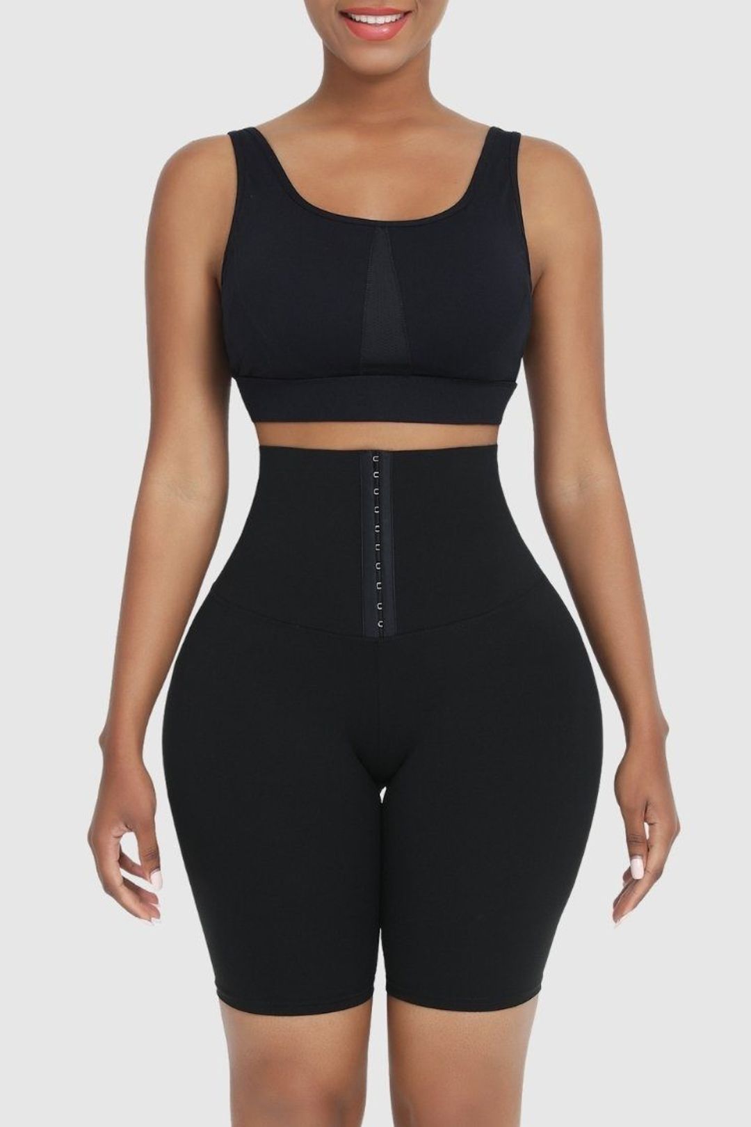 These Biker shorts are a blend of a workout shorts combined with shapewear and a waist trainer. They feature a high compression fabric to accentuate your curves and the unique high waist design has a an abdominal belt with several rows of clips that are adjustable to your level of compression to smooth and flatten your tummy.