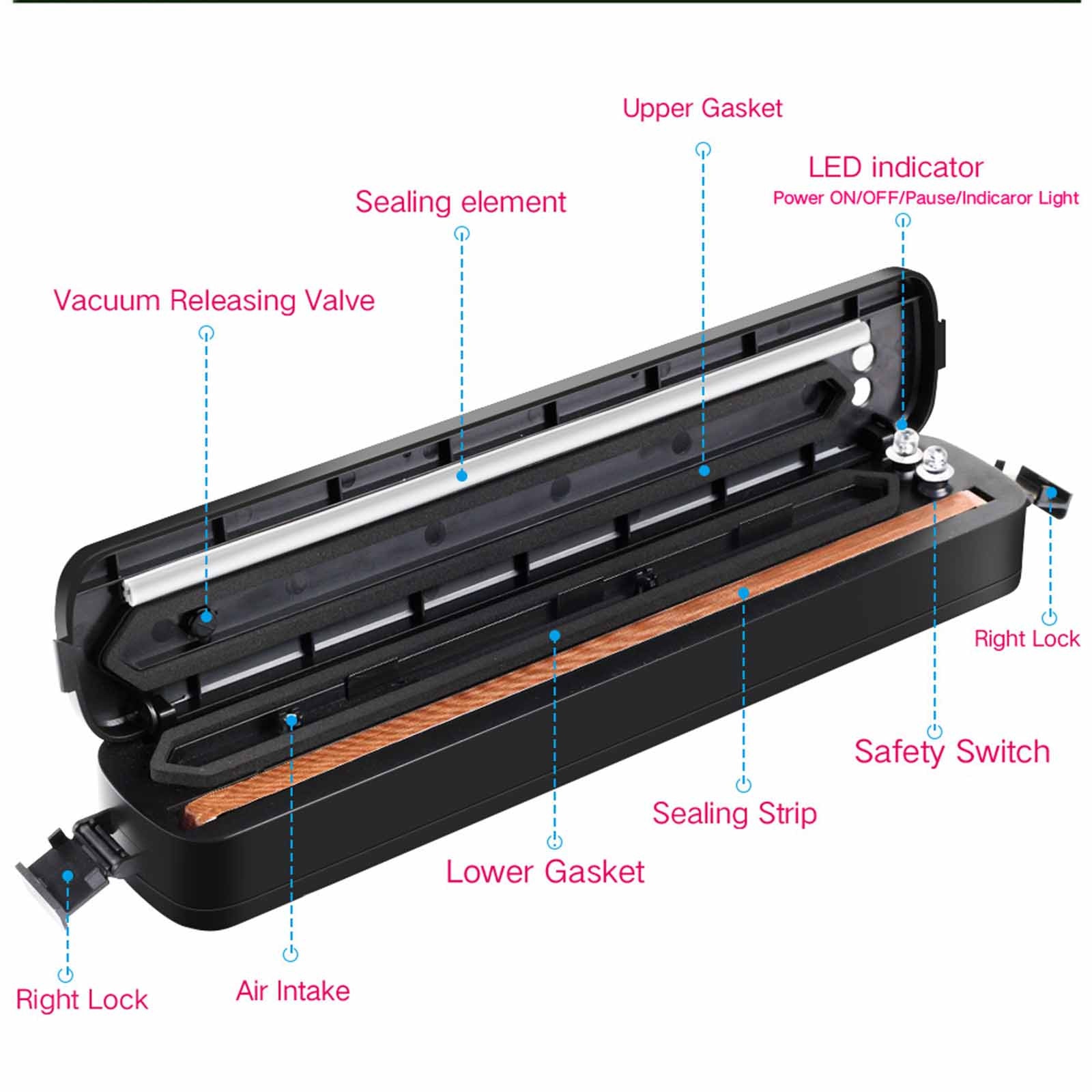 3. Contains: 1×Vacuum sealing machine+1×Power cord+1×Instructions+10×Sealed bag